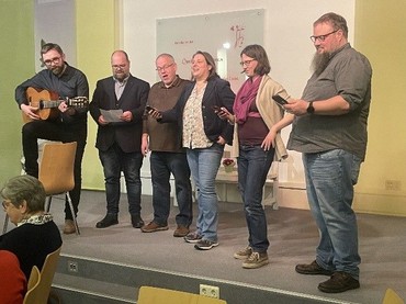 Besonders wichtig ist uns vertrauensvolles Miteinander, damit zukünftig ein gemeinsames Selbstverständnis, ein gemeinsames Kirchenbild erwachsen kann. So kamen wir am 19. März zum ersten „KV-Dinner for one“ im Burger Gemeindehaus zusammen, haben Selbstgemachtes verdrückt (Herzlichen Dank allen Köchinnen und Köchen!), uns näher kennengelernt und wirklich viel Spaß gehabt. Das Pfarrteam hat locker durch den Abend geführt und mit „Die Pfaffen rasen durch den Wald“ von Duo Camillo für Stimmung gesorgt.