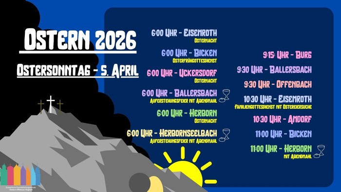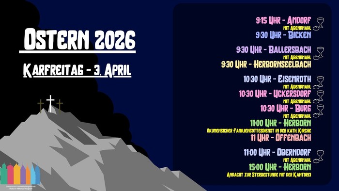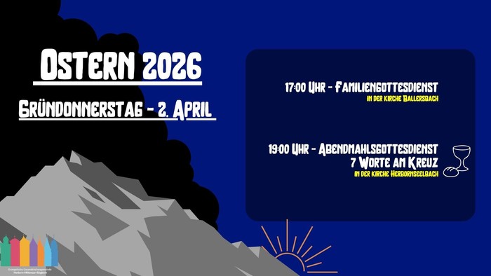 Auch in diesem Jahr laden wir in den Orten unserer Gesamtkirchengemeinde zu Gottesdiensten an den Feiertagen rund um Ostern ein.